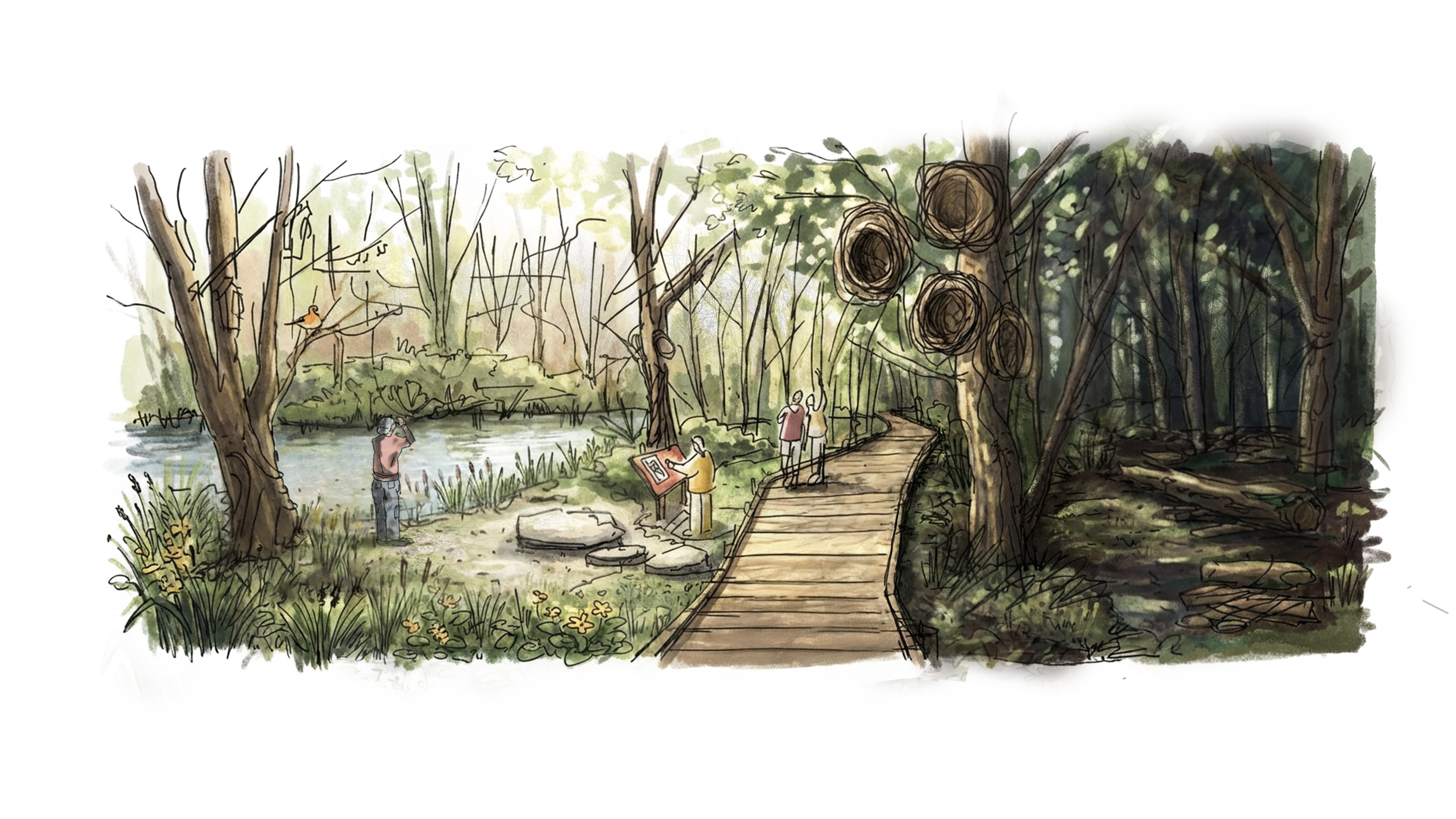 Following funding from The National Lottery Heritage Fund, the council invite you to view and comment on the early-stage conceptual designs for Rickmansworth Aquadrome. The designs capture the vision for the site, improving its visitor experience and protecting the environment. The visuals look at a welcoming hub, the need for boardwalks and habitat improvements. Please take some time to view the indicative imagery and give us your comments.